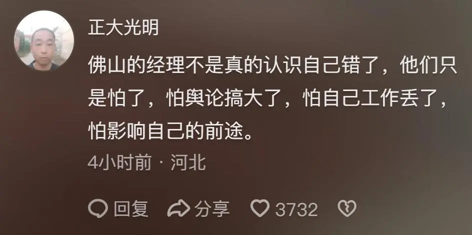 可是网友却不买账,认为漆老板道歉不是知错了,而是害怕这件事影响今后的生意,如果不是舆论发酵,总部可能就不会知道这件事,漆老板更不会道歉了。